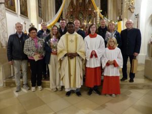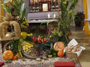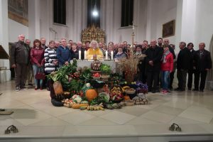 Am vergangenen Samstag luden die Pfarreien Vilsbiburg und Gaindorf Ehepaare ein, die in diesem Jahr 5, 10,15,25, 40 verheiratet sind. Unter den Paaren waren auch einige dabei, die auf 60 Ehejahre rückblickend konnten. Stadtpfarrer Peter König begrüßte alle und wies darauf hin, dass die Feier des Erntedankfestes eine Danksagung an Gott sein soll. Während Pfarrvikar Prosper den Schwerpunkt seiner Predigt auf das Erntedankfest legte, beschränkte Stadtpfarrer Peter König denn Dank nicht nur auf die Erntegaben. Dank auch für die Erfahrung von Liebe, Treue, und Verantwortungsbewusstsein die man während des gemeinsamen Ehelebens erfahren hat. Auch in der ehelichen Partnerschaft ist es richtig, den Menschen nicht an Äußerlichkeiten zu bewerten. Wichtig ist doch zu erfahren, welche Kraft und Stärke einem durch den Partner im Laufe der Zeit geschenkt wird. Liebe und Treue kann man nicht sichtbar darstellen. Dafür gehört Gott Dank gesagt.“ Nach der Kommunion traten die über 20 Jubelpaare vor, der Priester erteilte jedem Paar einzeln den Segen und bat sie, sich am Altar zu versammeln. Nach dem das letzte Paar gesegnet war sagte der Geistliche: “Ich muss mich korrigieren, vor dem Altar sind die Erntegaben- doch jetzt sind auch Treue, Liebe sichtbar durch Ihr Dasein am Altar“ Bevor der priesterliche Segen vom Geistlichen gespendet wurde, lud dieser die Anwesenden zum Stehempfang ins Pfarrheim ein. Im Pfarrsaal wurden die einzelnen Eheleute dann aufgerufen, erhielten aus der Hand von Stadtpfarrer Peter König eine Urkunde und eine Rose für die Frau. Das gemeinsame Foto wird nachgeliefert. Um diese Feier, bzw. den Sektempfang vorzubereiten waren natürlich viele fleißige Hände nötig. Ihnen allen ein herzliches „Vergelts Gott