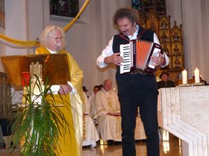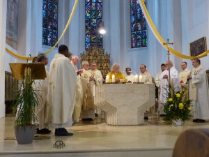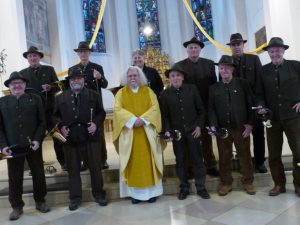 Am vergangenen Montag gab es für die Christen der Pfarreiengemeinschaft ein besonderes Ereignis, das es zu feiern galt. Stadtpfarrer Peter König feierte Geburtstag. Nicht irgendeinen sondern den 70. Dazu lud der Geistliche zum Feiern nach Vilsbiburg ein. Viele kamen, nicht nur aus Vilsbiburg , auch aus Kelheim, Straubing und Österreich kamen Leute aus ehemaligen Pfarreien, in denen Stadtpfarrer Peter König gewirkt hatte. Ihm zu gratulieren war ein Bedürfnis. Viele Priester der näheren und weiteren Umgebung kamen um zu gratulieren und zu feiern. Unter ihnen waren der Dekan Alfred .Wölfl und Regionaldekan Josef Thalhammer. Auch die Geistlichkeit der Wallfahrtskirche P. Robin und P. Manu war dabei. Begonnen hatte der feierliche Gottesdienst mit dem Einzug aller Priester.. Dann stellte Pfarrer Peter König die konzelebrierenden Priester namentlich vor. Angefangen von der Entstehungszeit der Glasfenster der Kirche vor 70 Jahren über die Ereignisse des Jahres 1955 , z.B. Beitritt zur Nato oder Gründung der Bundeswehr bis hin zu seiner Geburt als sogenannter Boomer spannte er den Bogen. Mit dem Gottesdienst sollte für 70 Lebensjahre gedankt werden. Dank galt auch den Jagdhornbläser aus Ulrichsberg für die musikalische Gestaltung. Das Evangelium vom Tage nahm der Geistliche als Impuls für seine Predigt. Er zeigte auf, dass es in seinem Leben ein Auf und Ab, Aufbruch aber auch Niedergeschlagenheit gab und er Gott um Klarheit und Sicherheit, Begleitung und Nähe auf seinem Lebensweg gebeten habe. Zum Schluss des Gottesdienstes zitierte Stadtpfarrer Peter König ein Seniorengebet, in dem es um die kleinen Weh-Wechten geht, die das Alter so mit sich bringt. Nach dem Gottesdienst gabs dann im Pfarrsaal das Weißwurstfrühstück. Bald waren alle Plätze im wunderschön dekorieren Pfarrsaal besetzt. Dies war ein Werk von Frau Miller, die mit viel Einsatz und Können die Tische und Fenster mit herbstlichen Gegenständen und Bildern aus dem Leben des Jubilars hergerichtet hat. So sorgten das Küchenteam und die Bedienungen unter Frau Wagenhofer für die schnelle Versorgung der hungrigen Leute mit Weißwürsten und Brezen, die Frauen des Frauenbundes Vilsbiburg und die des Christlichen Frauen- und Müttervereins aus Gaindorf für ein üppiges Kuchenbuffet. Viele Gäste wollten natürlich dem Geburtstagskind persönlich gratulieren, so auch die Frau Bürgermeister Entwistle, welche im Namen der Stadt gratulierte , dann reihten sich Gäste aus Seyboldsdorf, Gaindorf und Haarbach in die Warteschlange ein. Auch die Unterhaltung kam nicht zu kurz. So brachten die Jagdhornbläser ein Ständchen dar, Gstanzl über einige Gegebenheiten aus dem Leben des Pfarrers kamen zu Gehör. Auch der Leierkasten fand seinen Einsatz. Die Frauen des Frauen und Müttervereins hatten die Lacher auf ihre Seite als sie Stadtpfarrer Peter König mit einem Gemälde verglichen und die verschiedenen Eigenschaften herausstellten. Wie es in Straubing war konnte man von seiner ehemaligen Zugehfrau erfahren. Nach dem Kaffee machten sich viele weiter entfernte Gäste auf dem Heimweg. Doch damit war das Fest noch nicht zu Ende. Am Abend kamen die Mitglieder der Kirchenverwaltung, der Kolpingsfamilie, des Kirchenchores Vilsbiburg und der Vorstandschaft der Kath. Landjugend Gaindorf zum Gratulieren. Erst spät fand das Fest ein Ende. Ein besonderen Dank gilt allen, die zum Gelingen beitrugen. Hier sind auch Angehörige der Pfarreien Gaindorf und Seyboldsdorf gemeint, die durch ihr Kommen zum gemeinsamen Feiern zeigten, dass es möglich ist zu einer Pfarreiengemeinschaft zusammenzuwachsen