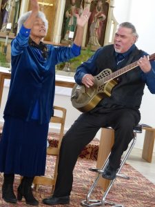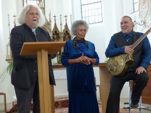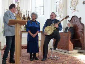 Am Nachmittag des  Samstags waren alle eingeladen, die Freunde von Gospels und Spirituals sind. Der Vorsitzende des Orgelbauvereins, Dr. Gahabka begrüßte die  Konzertbesucher. Er erwähnte, dass dies das dritte Mal ist, an dem  Larry und Erika Mankey in Konzert geben.  In diesem Jahr spielte das Wetter mit und so  kamen viele Zuhörer mit Auto, Fahrrad oder per Pedes  nach Herrnfelden in die Nikolauskirche.  Dort erwartete sie eine Vielfalt von  Gospel und Spirituals.  Gospels und Spiritual sind zwei Verwandte, aber unterschiedlicher Musikgenres, die aus der afroamerikanischen Tradition stammen, wobei Spirituals folkloristischen Lieder der Sklaven sind Der Unterschied zwischen Gospel und Spiritual lässt sich wie folgt zusammenfassen:  Gospels ist eine Form des Spirituals. Gospels sind komponiert beinhalten Elemente aus Blues und Jazz. Sie sind fröhlicher und dynamischer und konzentrieren sich auf die Botschaft des Neuen Testaments besonders auf das Leben und die Lehren Jesu. Ursprung  Spirituals: Entstanden im 19. Jahrhundert  unter afroamerikanischen Sklaven und sind oft Ausdruck von Leid, Hoffnung und Glauben. Sie sind in der Regel anonym und wurden mündlich überliefert. Die  Texte beziehen sich häufig auf biblische Themen, insbesondere aus dem Alten Testament  und spiegeln die Erfahrungen der Sklaven wieder. Erika und Larry Mankey verstanden es, mit ihrer gekonnten Interpretation der Lieder die Zuhörer in ihren Bann zu ziehen.  Bei den bekannten Liedern wurden auch die Anwesenden mit eingebunden.  War es auch am Anfang noch ein schüchternes Verhalten der Zuhörer, so kam doch durch das eine oder andere Mitsingen oder Klatschen  Bewegung in die Konzertbesucher.   Durch den lang  anhaltenden  Beifall   war natürlich Zugaben gefordert.  Am Schluss dankte Stadtpfarrer König dem Duo, das auf ihre Gage verzichtete und so die Einnahmen voll auf das Konto des  Orgelbauvereins eingezahlt  werden konnten. Er meine mit einem Augenzwinkern, dass ein 4. Konzert noch möglich sei.  Damit man zuhause auch noch diese Musik hören konnte, stellten sie einige CDs zur Verfügung, die  für die neue Orgel verkauft wurden.   Der Orgelbauverein sagt den Beiden ein herzliches Vergelt`s Gott